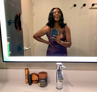 My results from having a consistent routine that includes products for my dry skin type and targeted for fading hyperpigmentation to even out my skin tone.